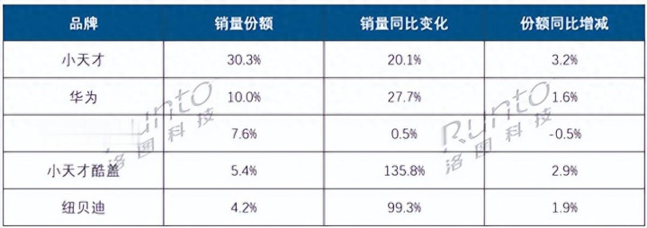 小天才以30.3%的销量份额强势领跑,销量同比增长20.1%,市集上风进一步扩大。