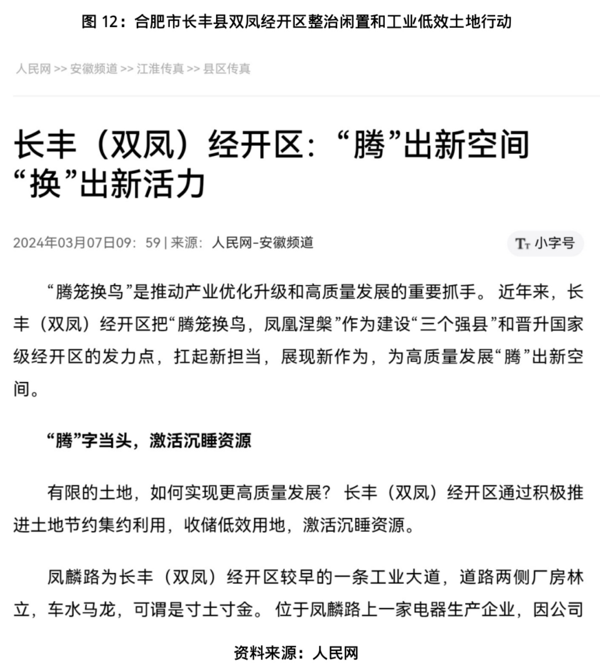 值得防卫的是,据东说念主民网报说念,频年来安徽省正纵深鼓励批而未供、闲置和工业低效地皮全域惩处攻坚步履,合肥市长丰县双凤经开区通过“腾笼换鸟,凤凰涅槃”等举措周转存量低遵守地的作念法,已在全省酿成示范效应。