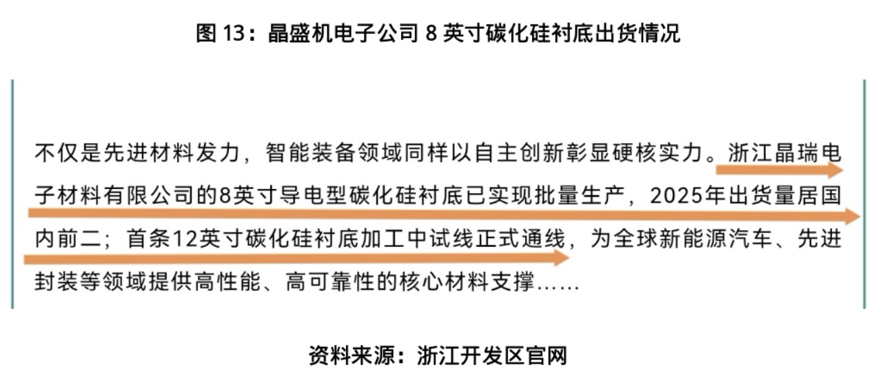据浙江开发区官网信息,晶盛机电(300316.SZ)子公司浙江晶瑞电子材料有限公司的8英寸导电型碳化硅衬底已实现批量出产,2025年出货量居国内前二;首条12英寸碳化硅衬底加工中试线认真通线。此外,2025年6月20日,浙江省投资神态在线审批监管平台发布了浙江晶瑞电子材料有限公司年产60万片8英寸碳化硅衬底片切磨抛产线项筹划备案公示。不出丑出,行业集体向大尺寸升级的趋势愈发明晰。