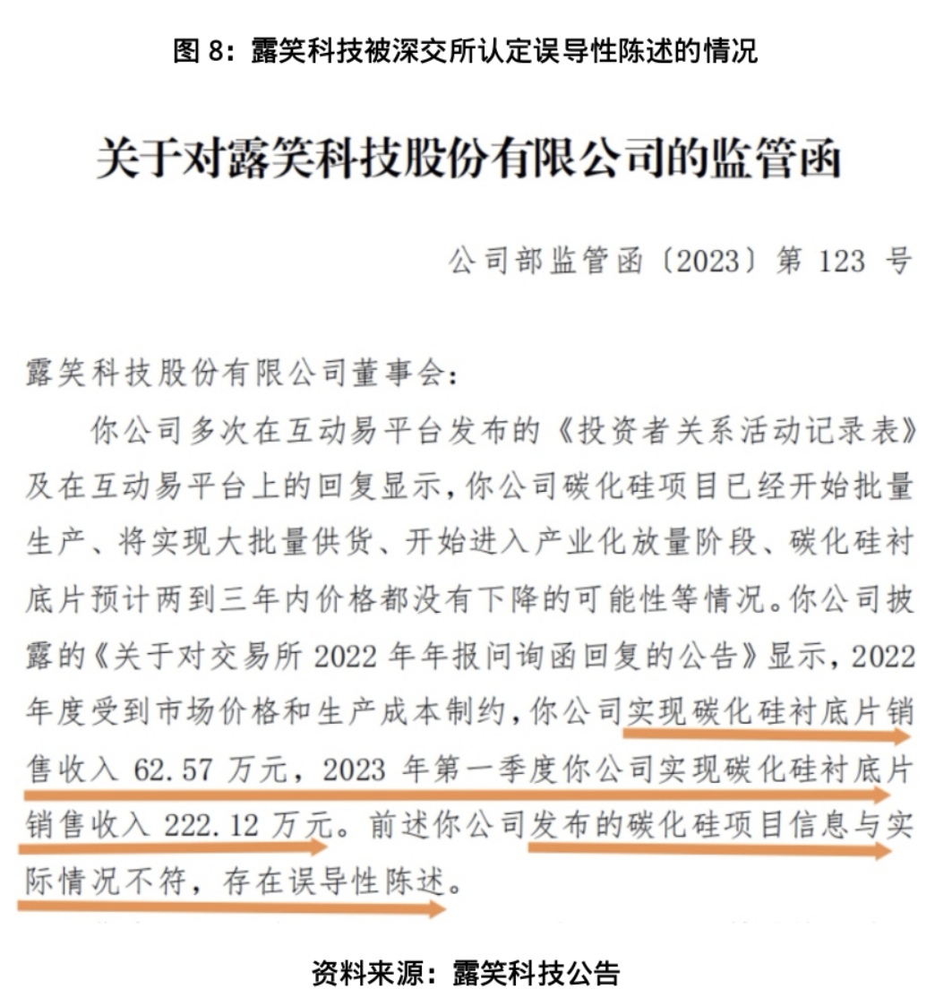 神态进程滞后与信息表示内容的矛盾更激励监管体恤。2023年8月,澳门新浦京游戏app深交所认真下发监管函,明证实定露笑科技在碳化硅神态推崇表示上存在误导性论述,违背信息表示真的性原则。