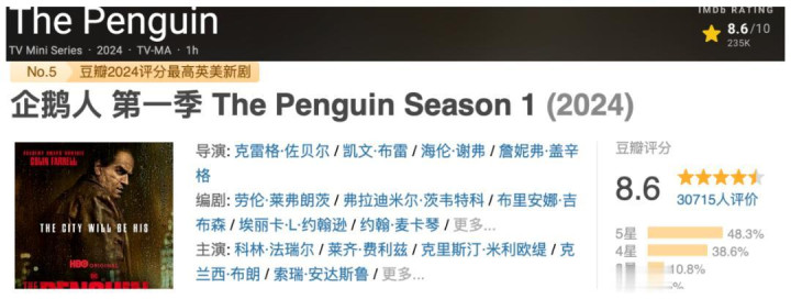 开播后口碑和收视双丰充,现在IMDb和豆瓣均是8.6分。