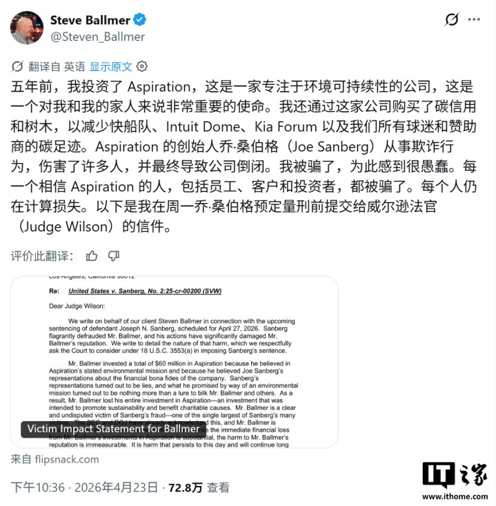 在宣判前提交给法官的信中,澳门新浦京app鲍尔默严防述说了我方的受害经验。他傲气我方共插足6000万好意思元,如今已一齐损失。他在公开信中坦言我方“被骗取了,并为此感到愚蠢”,强调通盘肯定该公司的东说念主均碰到了损失。