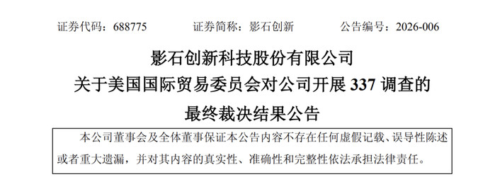 影石改换在公告中示意:“本次337打听未对公司分娩、打算变成实践性影响。公司将执续不受放手地在好意思国入口和销售现存产物。”