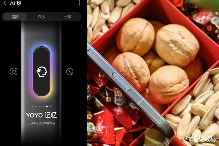 手机侧面保留了实体AI键,不错设立短按、长按、双击三种交互方法,比如我将短按设立成YOYO记忆,那么在职何页面只需按一下,YOYO就会把现时的信息纪录下来,并作念成一段浅薄的分析阐扬,虽然,在拍照时,AI键也不错算作念快门键使用,或是滑动进行变焦,终点的便捷。